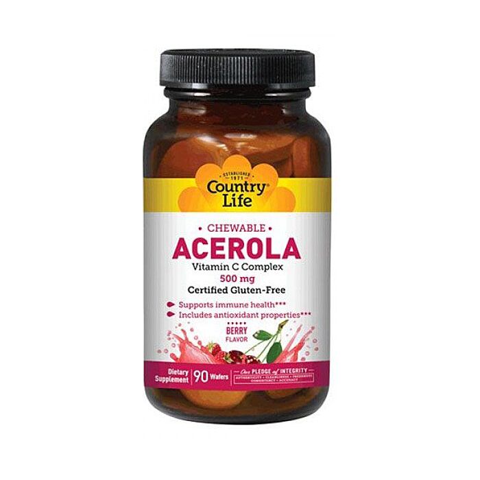 Диетическая добавка Ацерола витамин С производства ТМ Country Life (США) содержит очень важную для организма аскорбиновую кислоту, полученную из бивофлавонидов цитрусовых и экстракта ацеролы (барбадосской вишни). Плоды этих растений являются источником большого количества витаминов С и К. Прием данного препарата позволяет восполнить дефицит этих элементов, играющих ключевую роль в поддержании здоровья и активного образа жизни.