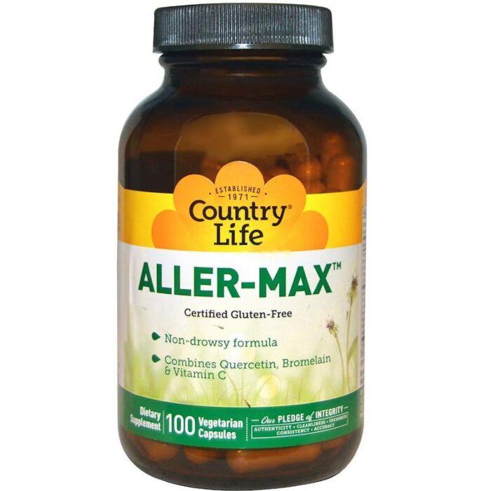 Aller-Max от Country Life - это уникальный комплекс на базе ключевых ингредиентов кверцетина, бромелина и витамина С. Кверцетин - это натуральный биофлавоноид нецитрусового происхождения, полученный из цветочных бутонов. Бромелин - это фермент, полученный из ананасного стебля. Aller-Max также содержит витамин С и такие травы как двудомная крапива и кайенский перец.