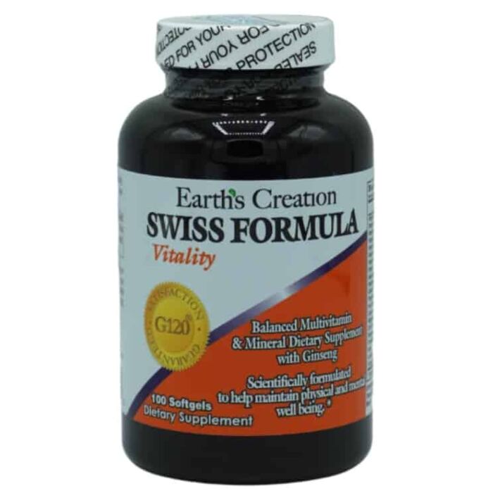 Earths Creation Swiss Formula 30 caps — мультивитаминный комплекс с более чем 20 витаминов и минералов усиленный корейским женьшенем. Основными компонентами являются Витамины А, D, E, C, группа витаминов В, а также кальций, железо, цинк, магний.