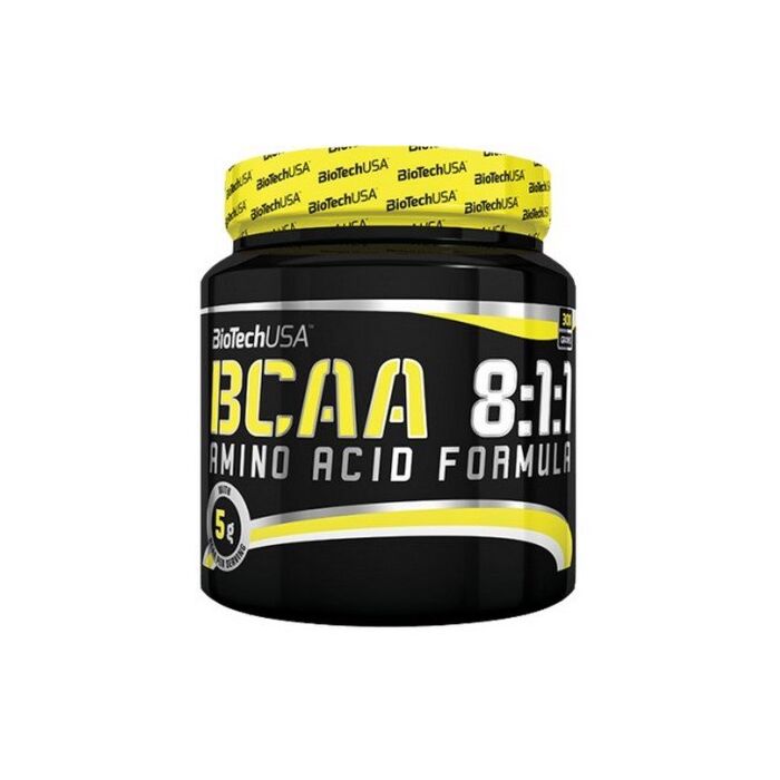 До ВСАА відносяться 9 амінокислот, незамінних для людського організму, тобто ваше тіло не в змозі їх синтезувати і може отримувати тільки разом із їжею або у формі спеціальних препаратів. ВСАА 8:1:1 BioTechUSA містить підвищену пропорцію лейцину – основної амінокислоти, яка бере участь у синтезі білка для будівництва вашого тіла.
