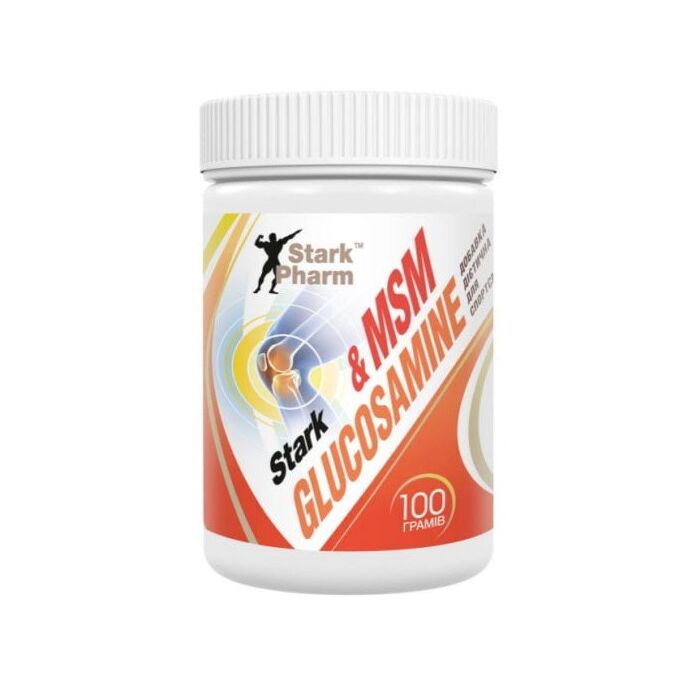 Харчова добавка Stark Pharm - Glucosamine & MSM містить глюкозамін сульфат і метилсульфонілметан (MSM), доповнений вітаміном C. Препарат є харчовою добавкою, яка сприяє нормалізації функціонування опорно-рухового апарату.