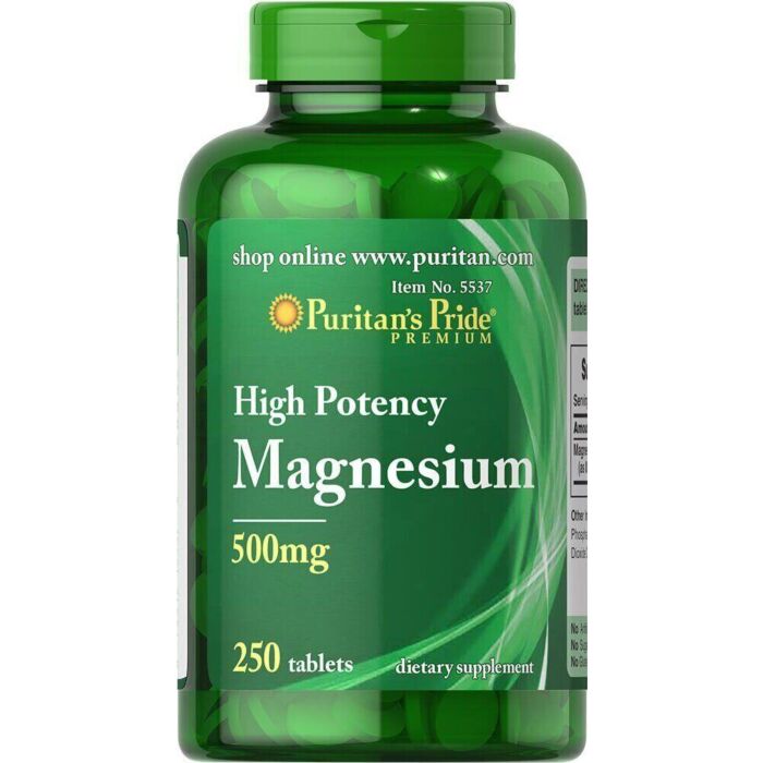 Puritan's Pride Magnesium 500 mg – відіграє важливу роль у підтримці мінералізації кісткової тканини, а також бере участь у м'язових скороченнях та нервових імпульсах.